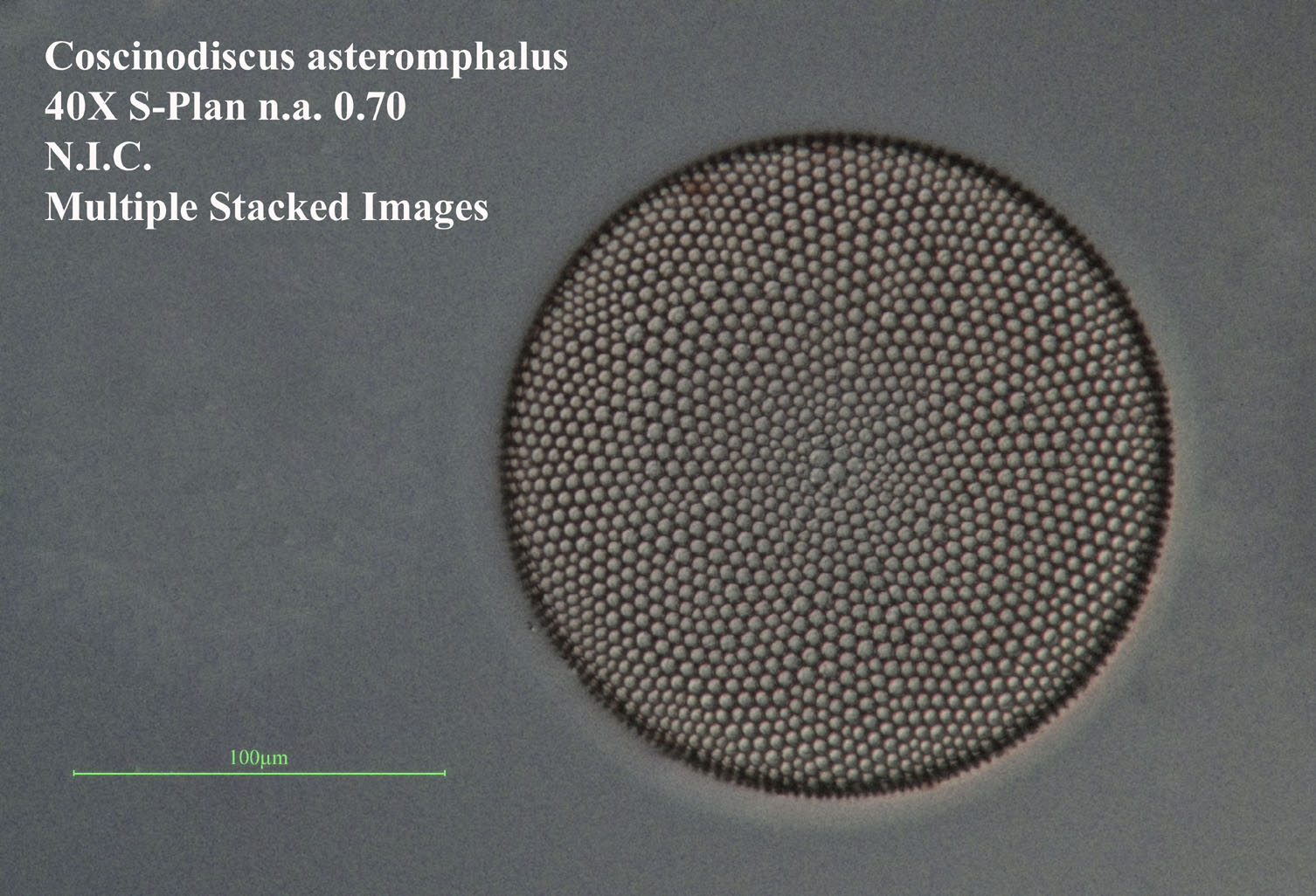 NUMBERING, IDENTITY, AND SEQUENCE: To make it easier to understand, I have created a numbered list of the diatoms on this slide, and numbered the image shown above. The diatoms are shown below in the order of the numbers. It should be noted that for some of the diatoms, the names have changed since Kemp identified them. In these cases, I tried to indicate that. I also note that sometimes Kemp's list shows two diatoms next to each other out of order, but my ordered list is correct. I also tried to confirm the identification of each, as Klaus warned me I might not agree with his identification in all cases. In cases where I am reasonably certain of the identity, I have pasted as asterisk(*) next to the name. In those in which I am very uncertain or doubtful, I placed a question mark(?). In some cases I was unable to find a good image of the diatom named and these have neither mark. Two diatoms (#72 and #98) are clearly not what Kemp said they were, and this is indicated, as so far, I have not been able to firmly identify them. Some are misspelled in his original list, and so I tried to correct all of Kemp's spelling errors, but I may still have made my own! Comments are very welcome!